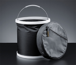 El versátil cubo plegable de tejido de poliéster robusto y estanco puede cerrarse con una tapa (no estanca). Por lo tanto, el cubo no solo es adecuado para lavar el vehículo sino que puede emplearse como práctico recipiente para productos de limpieza de este o compras. El cubo se pliega fácilmente para ahorrar espacio y guardarlo en la bolsa de transporte suministrada Un asa metálica sirve para su transporte. Capacidad: 11 litros. Incluye: bolsa con compartimento con cremallera, cubo plegable.