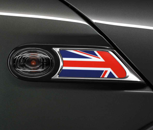 Kit de 2 piezas. La imagen muestra los intermitentes adicionales Black Line y las molduras opcionales para los intermitentes laterales con diseño Union Jack.